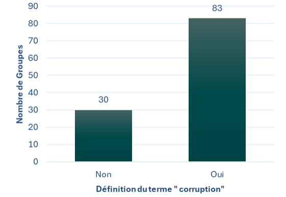 - Pour reprendre la célèbre propos de Nicolas Boileau « Ce qui se conçoit bien s’énonce clairement, et les mots pour le dire arrivent aisément», l’on s’est posé la question si la notion même de corruption était définie, point objectif, et si la définition formulée était aisément appréhendable, point plus subjectif. L’analyse montre que 83 Groupes peuvent revendiquer un oui aux 2 questions.