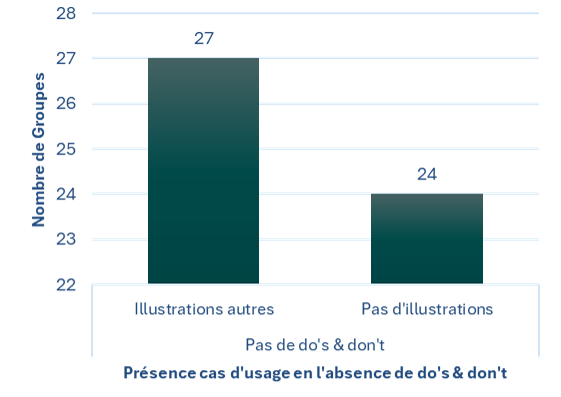 Toutefois, il convient de préciser que ls groupes ne faisant pas figurer de do’s & don’t dans leur production illustrent tout de même leur code de d’illustrations et de cas d’usage dans de nombreux cas.