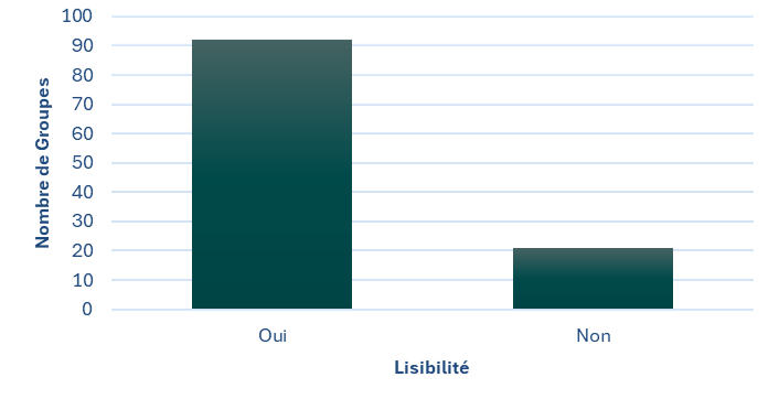La réponse attendue est ici binaire, oui, ou non. 113 Groupes sur 120 permettent la consultation de leur code en ligne. Ces 113 groupes sont identifiés dans ces lignes comme les « groupes publiant ».