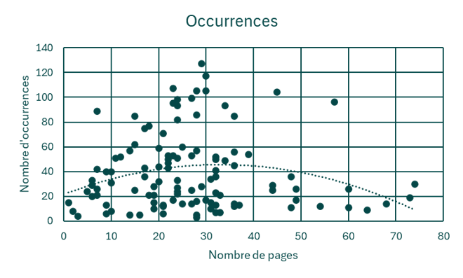 - Et pour finir le rapport entre occurrences et nombre de pages oscille entre 0,1 et 15.