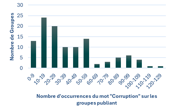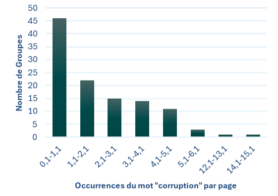 Corrigé du Groupe n’ayant qu’une seule page web, le rapport s’étale entre 0,1 et 12,7. Ce qui signifie que le terme corruption apparaît en moyenne entre 0,1 et près de 13 fois par page du code ou de la charte.