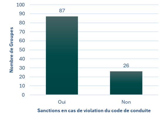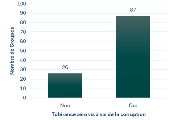 Il est notable qu’une proportion relativement importante de groupes fait état de sanctions disciplinaires en cas de survenance de faits de corruption, ce qui constitue probablement un glissement sémantique.
